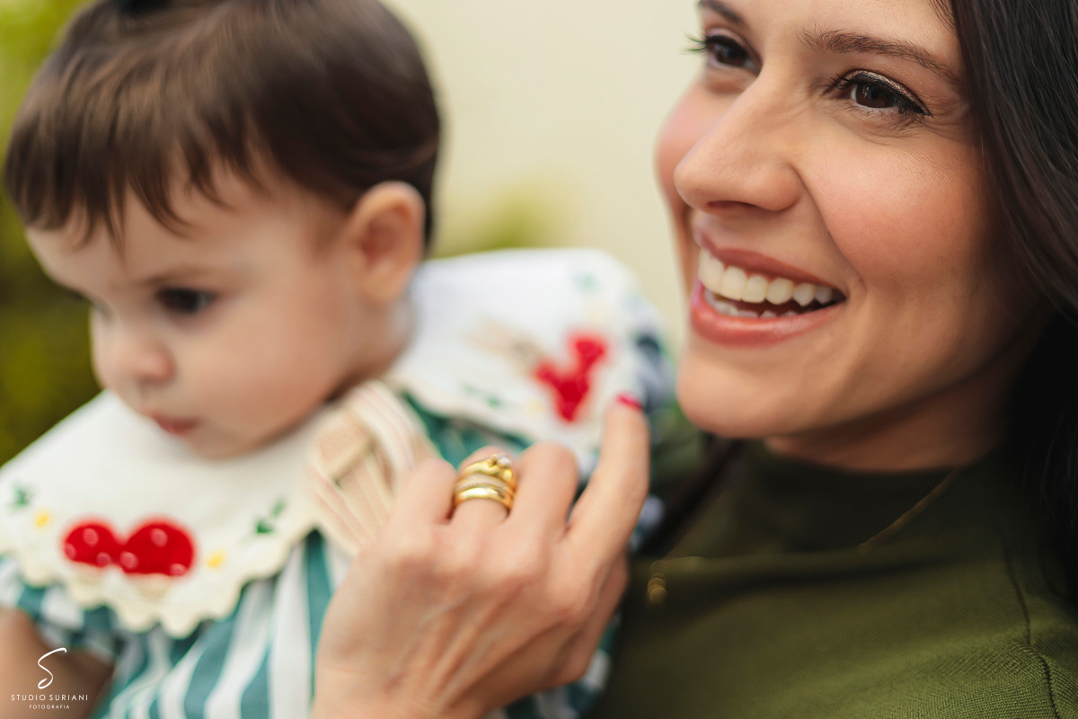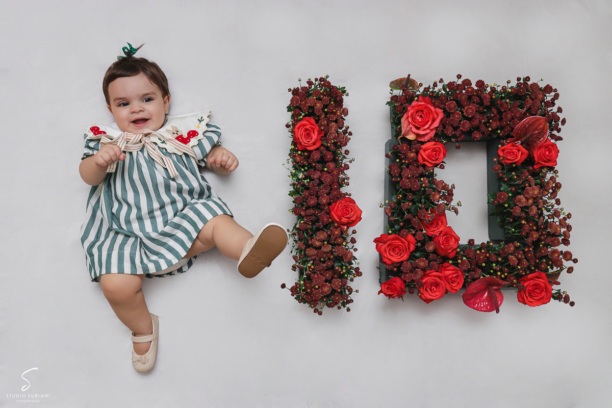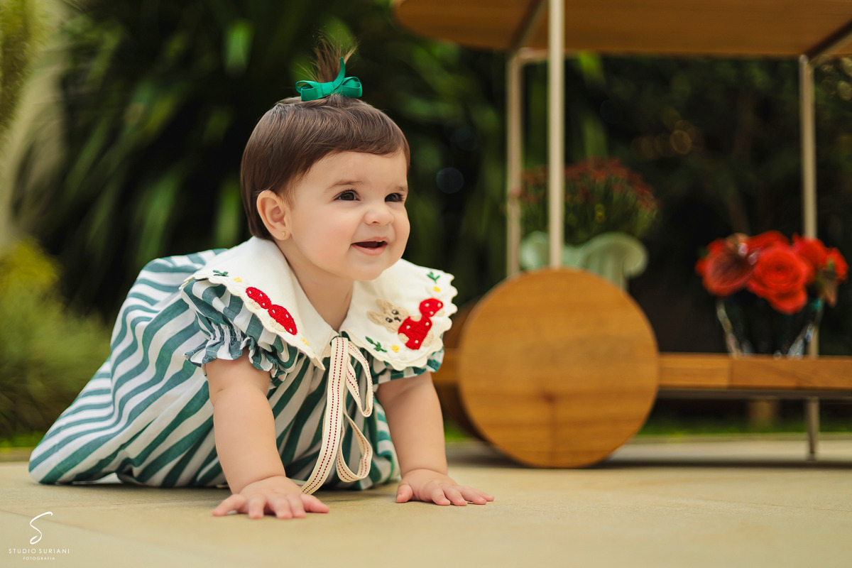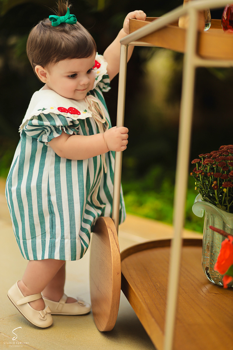 As fotos da Laura foram feitas no prédio onde seus pais moram, no ambiente onde ela está crescendo, onde deu seus primeiros passos, onde aprendeu a engatinhar e onde solta as risadas mais gostosas ao brincar com quem mais ama. Cada clique conta um pedacinho da sua jornada, e o resultado é uma coleção de lembranças que serão valorizadas por toda a vida.