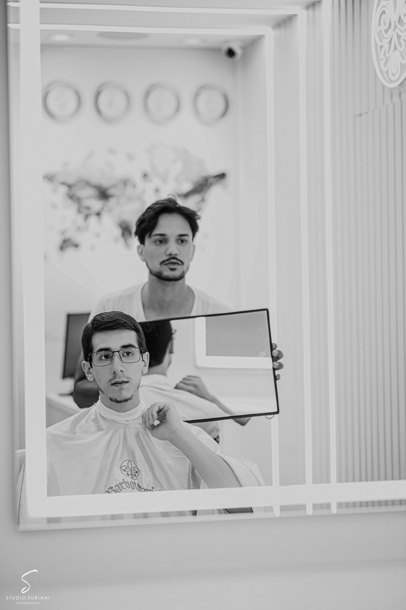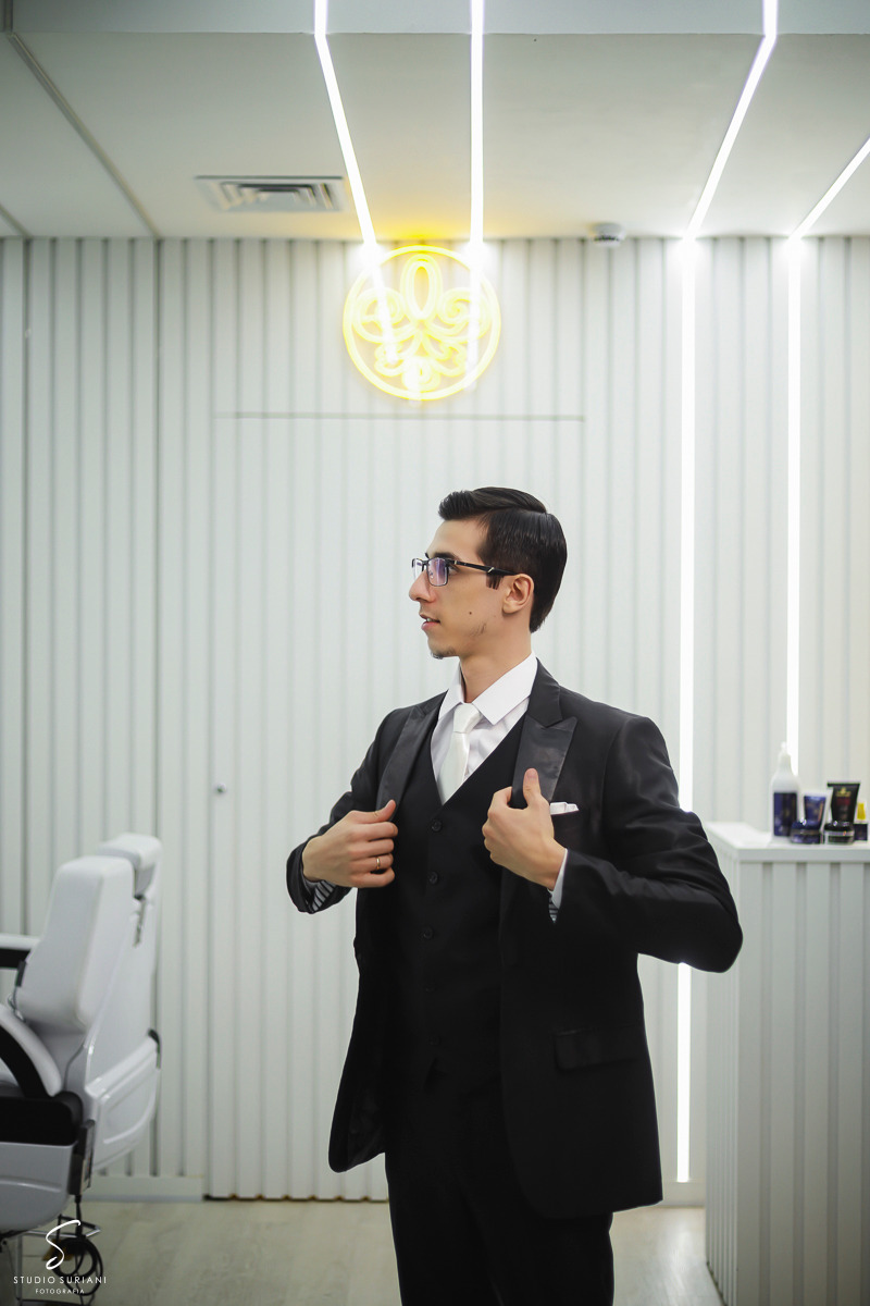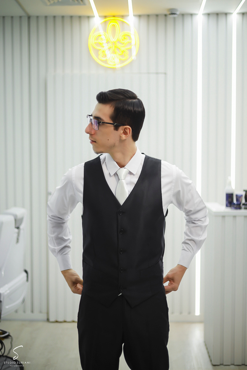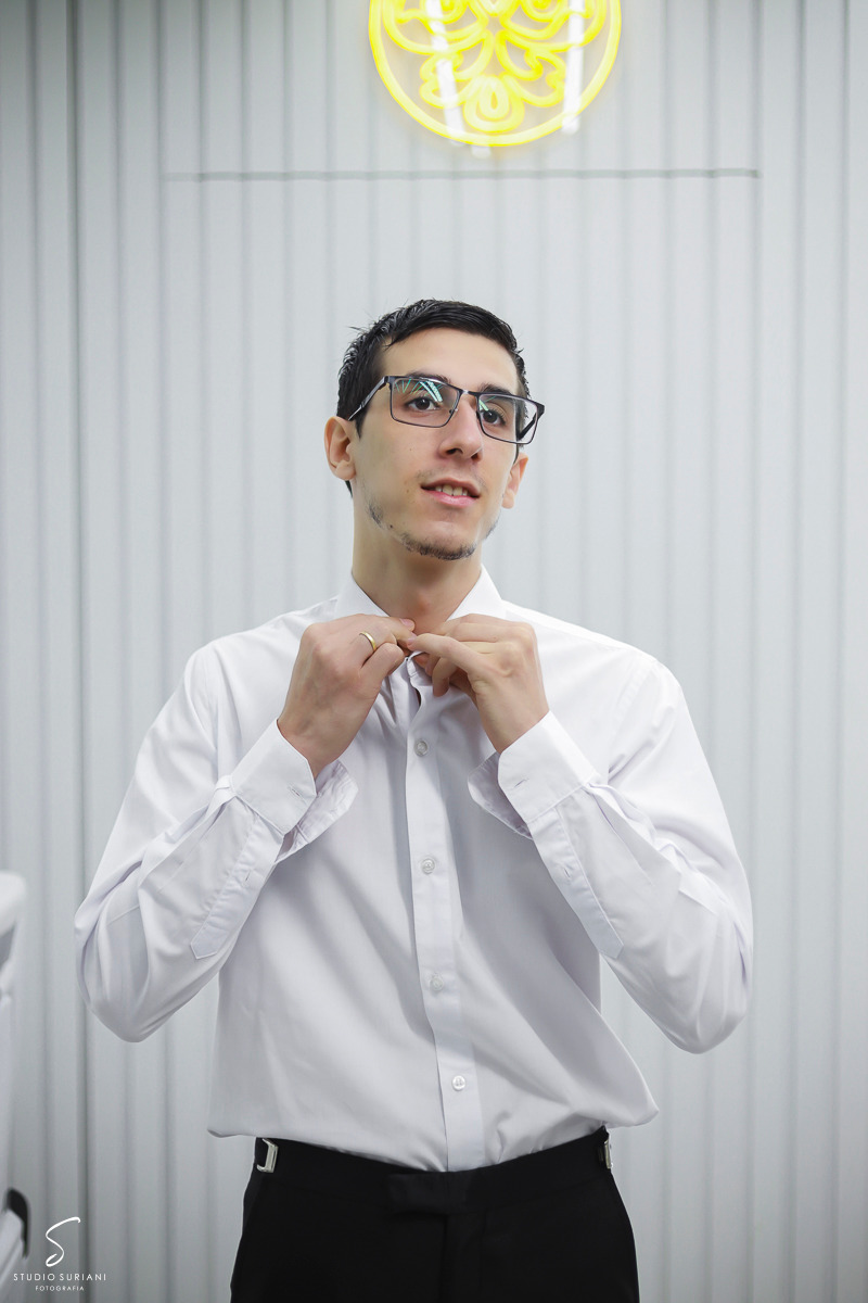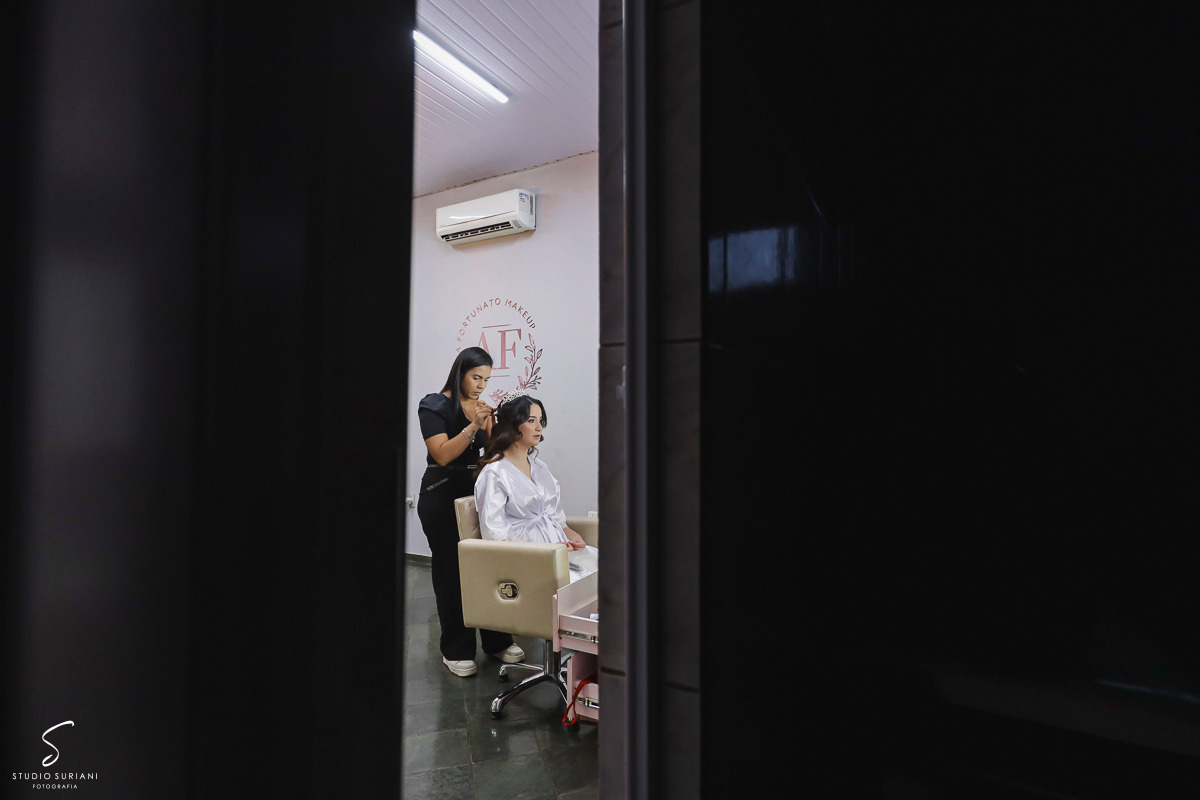 Desde os preparativos, era impossível não notar o brilho nos olhos dos noivos. A Ana, emocionada a cada pincelada da maquiadora Andressa Fortunato (Andressa Fortunato Makeup), já deixava claro o quanto aquele momento era especial. Do outro lado da cidade, o Túlio exibia um sorriso constante enquanto se preparava na Barboterapia Visage — uma mistura de empolgação e aquele nervosismo natural que só um grande amor consegue provocar.