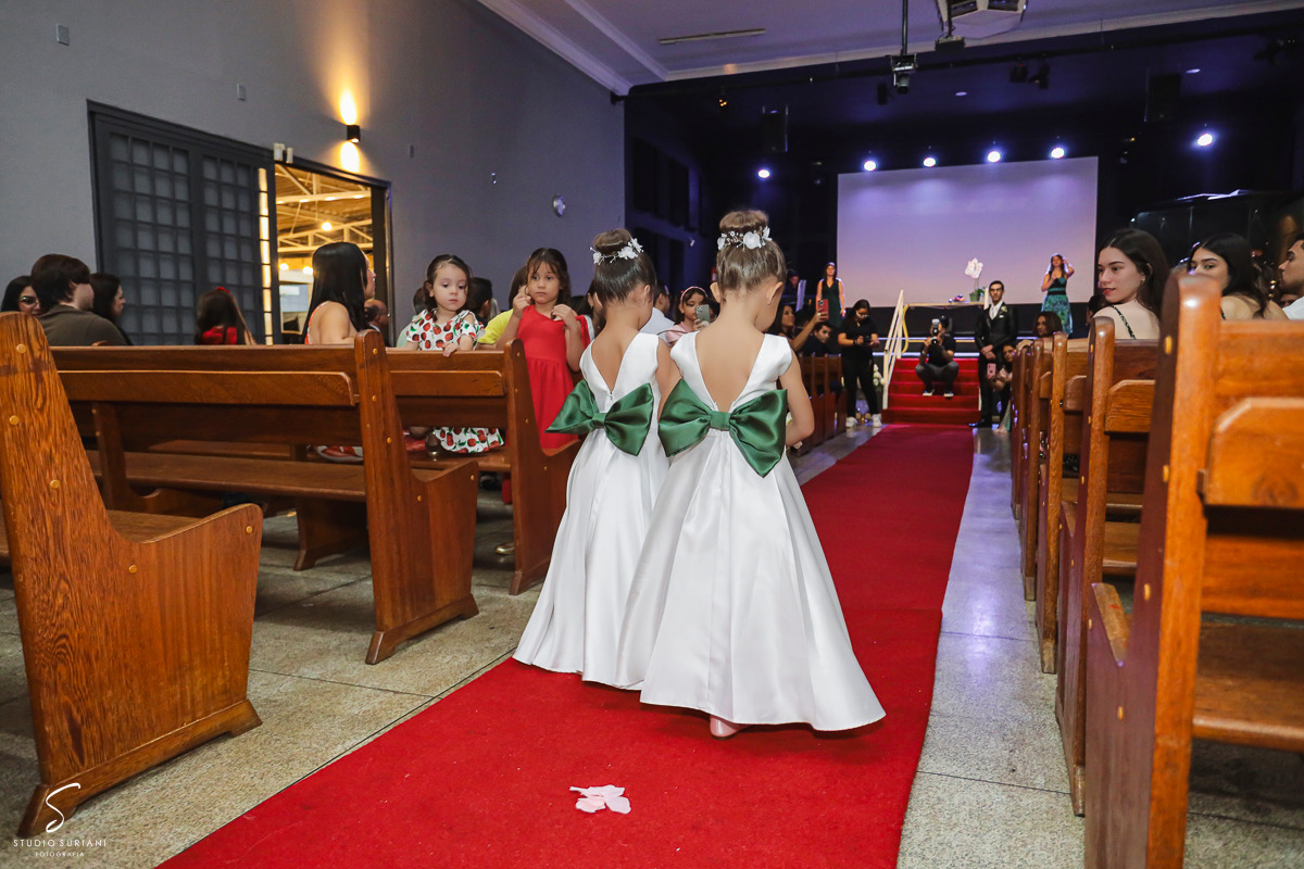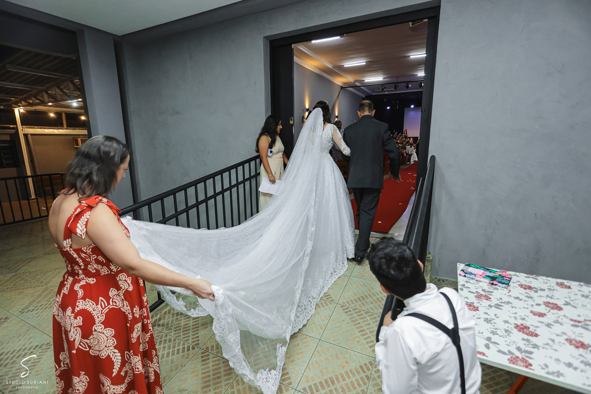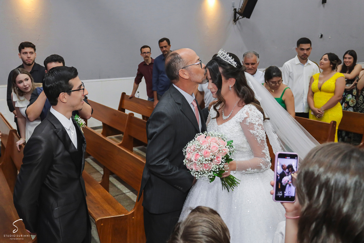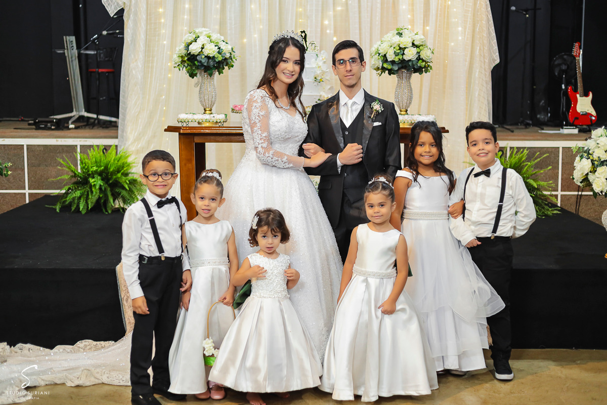 Um detalhe especial desse casamento é que ele teve o rito religioso com efeito civil, realizado por um dos pastores da igreja. Uma alternativa linda e prática, que torna a celebração ainda mais significativa para os casais que desejam alinhar fé e compromisso legal em um só momento.