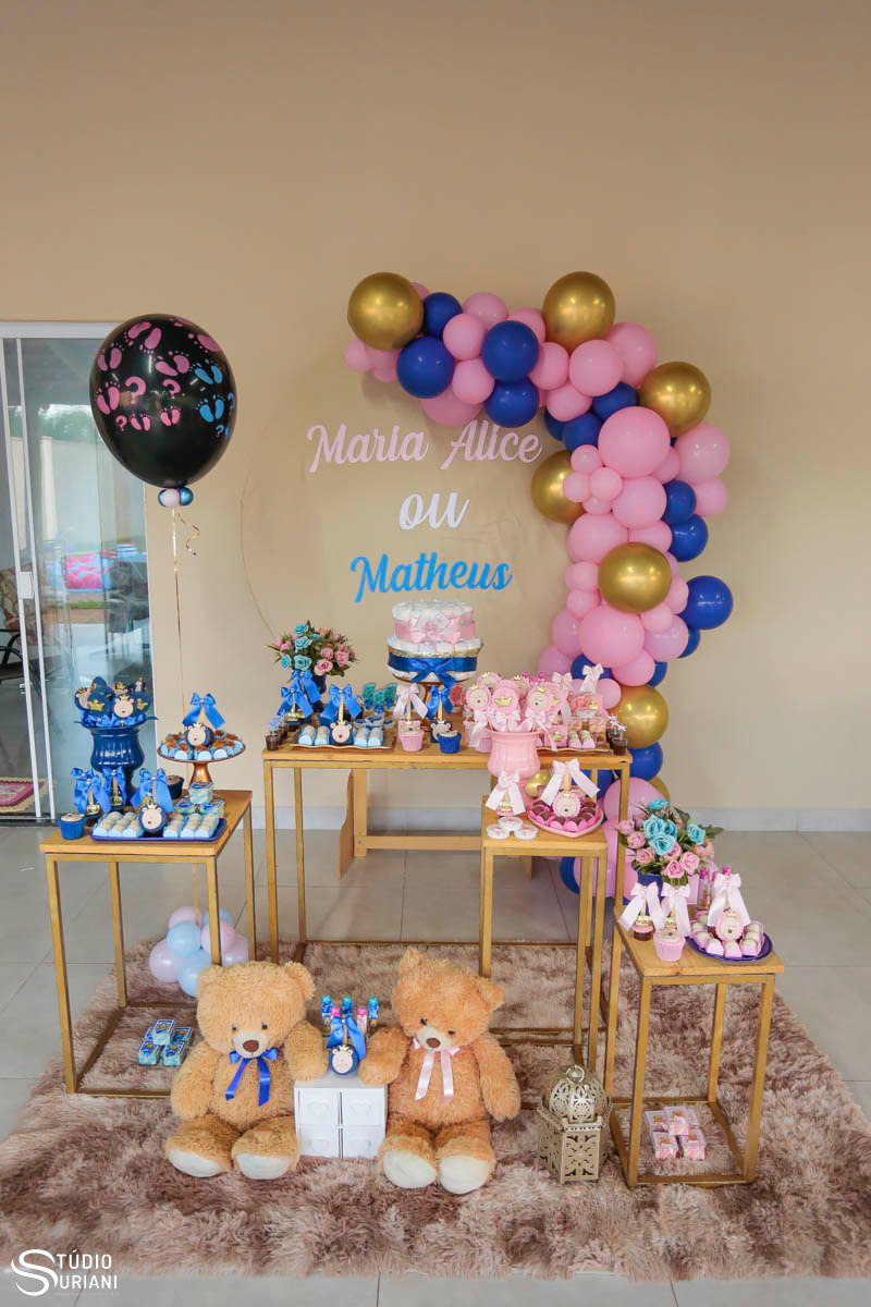 Nesse momento, é importante que os pais apenas escolham como será feita a revelação, mas não participem do processo de montagem. Isso é importante para garantir a surpresa da festa! Algumas opções interessantes são: