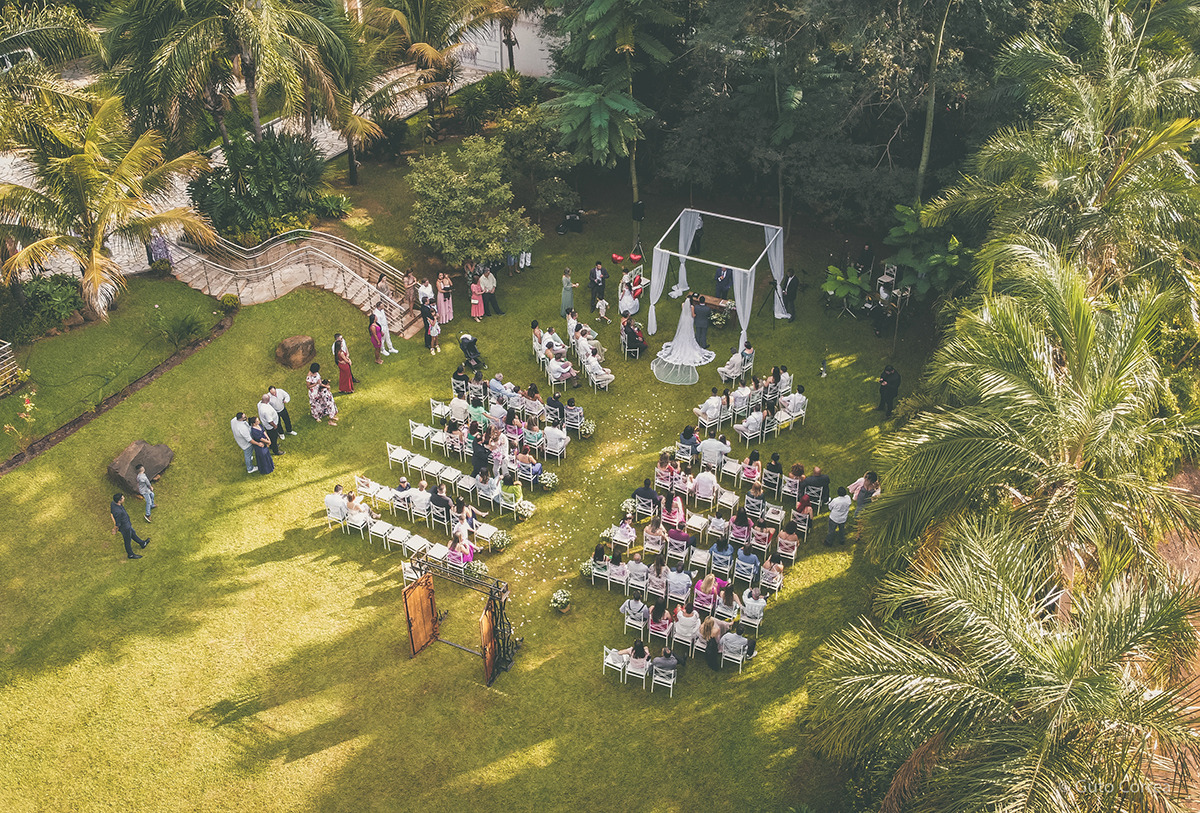 Esta chácara se destaca por ter um Chalé para os noivos e mais alguns quartos para hospedagem além de muito verde e paisagismo diferenciado.